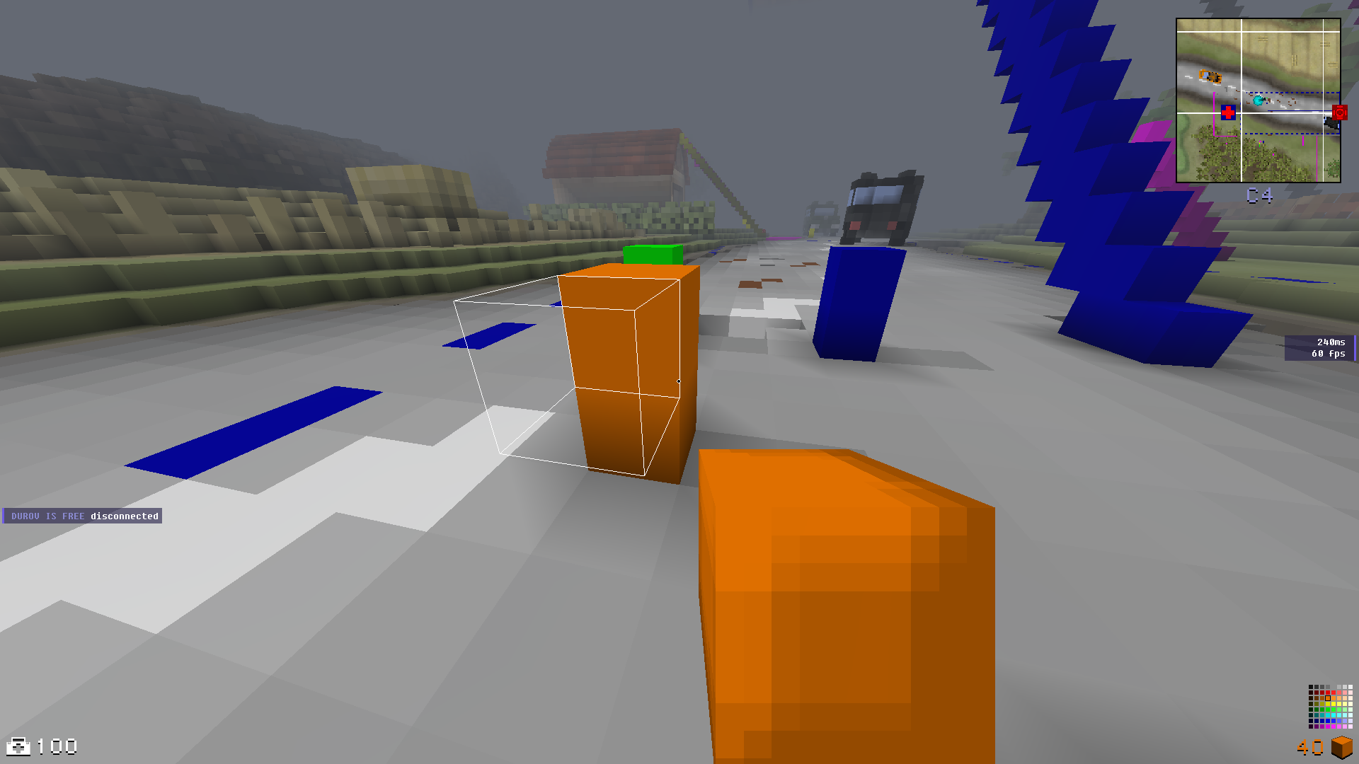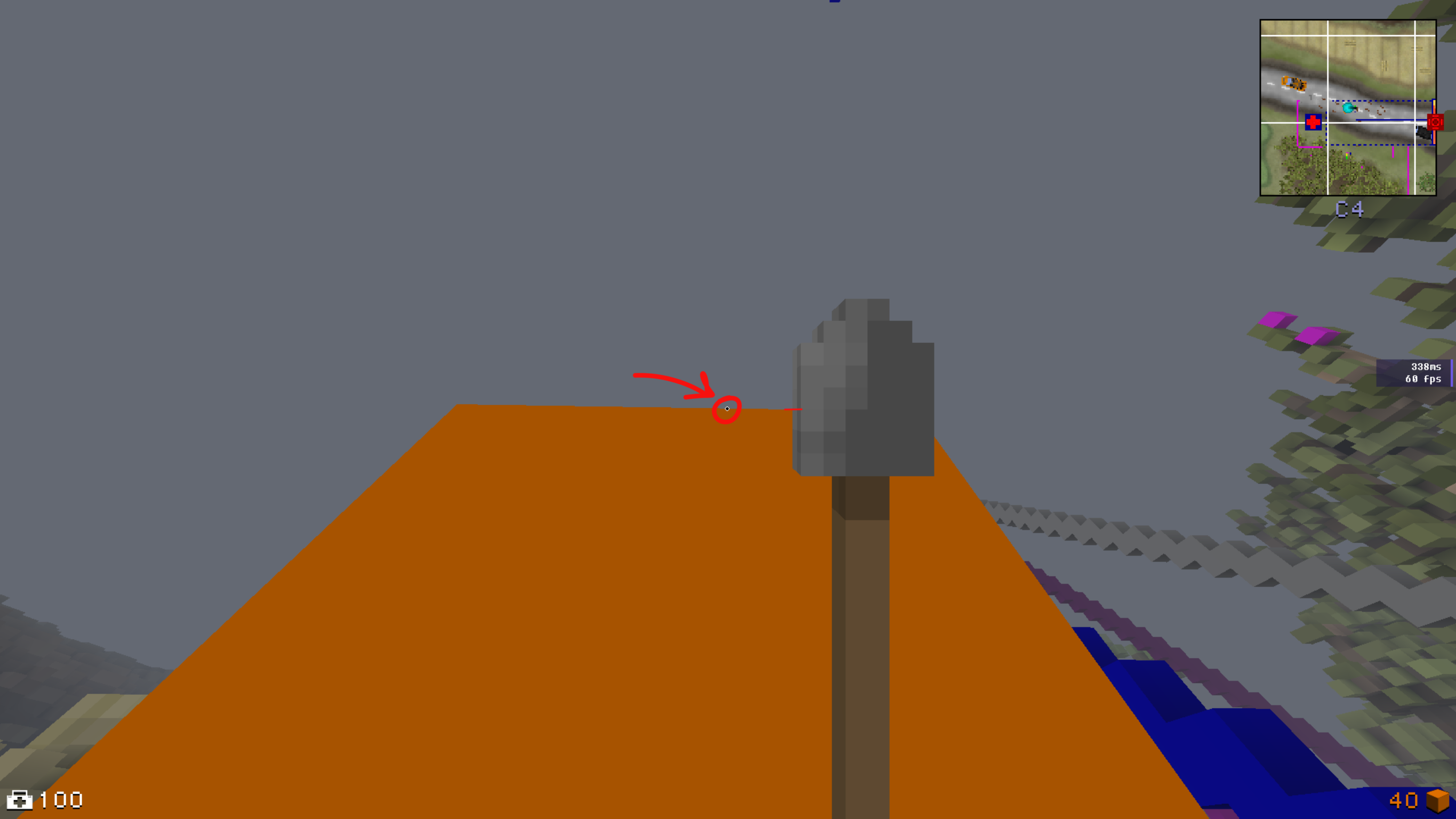 Now move yourself in a position where the top of end front voxel of grey part is aligning with bottom of flag block.